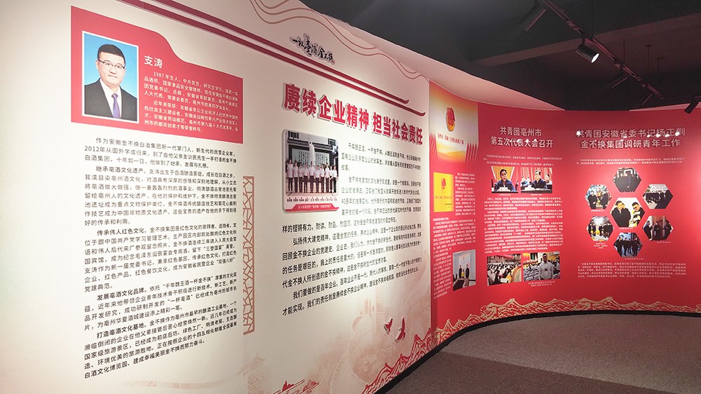 金不換黨建館的文化建設展示的內(nèi)容,突出了黨建引領,回顧了金不換企業(yè)黨委帶領金不換白酒集團不斷發(fā)展壯大的歷史。金不換企業(yè)發(fā)展史正契合了我國從改革開放到進入新時代的全過程。40多年的發(fā)展變化,她所展示的內(nèi)容和前進的節(jié)拍,正融進了我國改革開放的每一個階段。金不換邁出的步伐緊扣時代的節(jié)奏,顯得是那樣的鏗鏘有力。耐讀、耐品、耐回顧。這就是金不換黨建館的價值之所在。